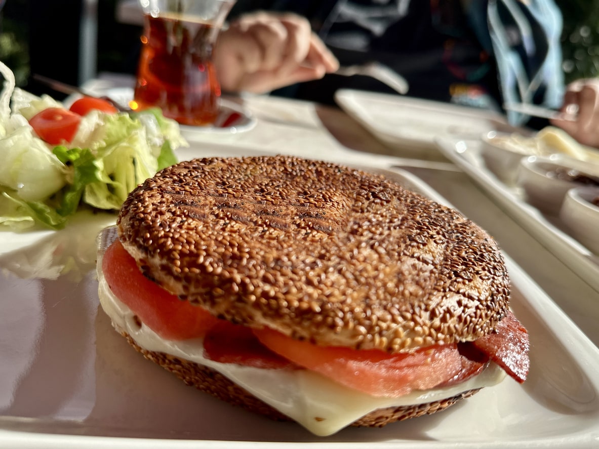 Toasted Turkish bread with cheese and tomatoTurkish Loaded Option